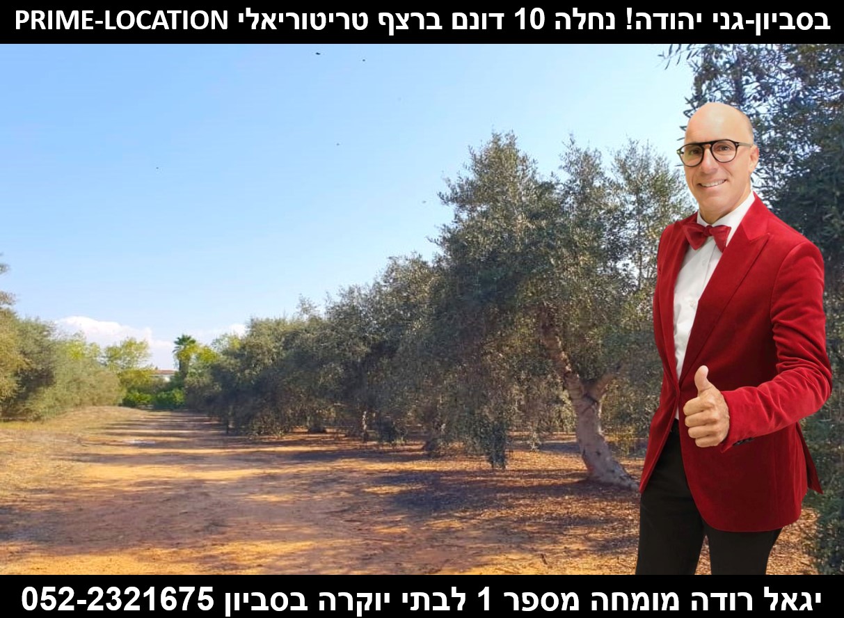 רוצה לגור בסביון ולהתחיל ככה את הבוקר? בסביון-גני יהודה! נחלה 10 דונם ברצף טריטוריאלי,PRIME-LOCATION אפשרות לבנות אחוזת פאר או לחילופין 3 ווילות.הסביבה פסטורלית,נוף ירוק למרחבים.(ניתן לרכוש את הנחלה ב-12 מיליון נטו,כאשר כל תשלומי המיסים יחולו על הרוכש הפוטנציאלי) .לפרטים ולסיור אישי: יגאל רודה אוהב את העבודה לשירותך,מומחה מספר 1 בסביון-הסיכוי הגבוה ביותר עבורך לביצוע עיסקה 052-2321675