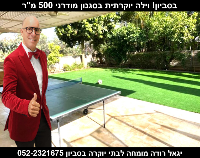 בסביון! וילה יוקרתית בסגנון מודרני, PRIME-LOCATION, מטבח משודרג הכולל אי, חדר אוכל אינטימי הפונה אל החוץ, פינת משפחה,חדרים מרווחים,חדר קולנוע/חדר סוני,יחידה לאופר, חימום תת ריצפתי,גינה מוקפת צמחייה,איזורי חוויה מרווחים,אופציה לבריכה. ברשותי המבחר הגדול ביותר לבתי יוקרה.לפרטים ולסיור אישי:יגאל רודה אוהב את העבודה לשירותך,מומחה מספר 1 בסביון-הסיכוי הגבוה ביותר עבורך לביצוע עיסקה 052-2321675