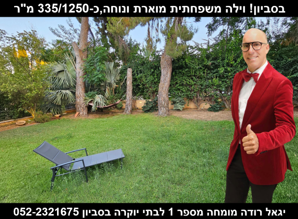 רוצה לגור בסביון ולהתחיל ככה את הבוקר? בסביון! וילה משפחתית, מסודרת ונוחה,סלון OPEN-SPACE הפונה למדשאה מוקפת עצים בוגרים,פינת אוכל משפחתית +פינת אוכל לאירוח,חדר משפחה+קמין, החדרים מרווחים,סוויטת הורים XL,איזורי הצללה ואירוח. לפרטים נוספים ולסיור אישי:יגאל רודה אוהב את העבודה לשירותך,מומחה מספר 1 בסביון,הסיכוי הגבוה ביותר עבורך לביצוע עיסקה 052-2321675