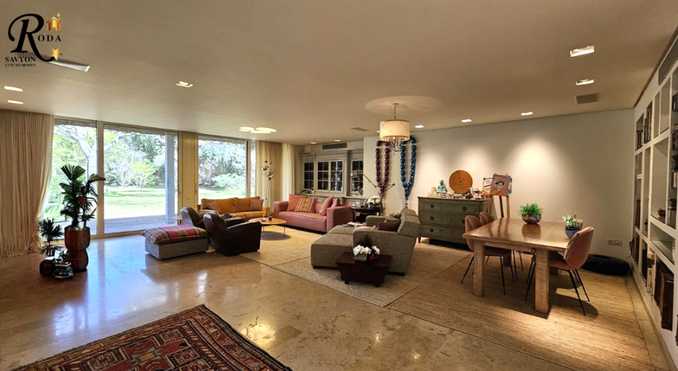 Dreaming of living in Savyon and starting your mornings like this? I’m excited to present one of the most impressive homes in Savyon, a rare single-story luxury estate sprawling over approximately 5,000 sqm of private land and about 700 sqm of beautifully designed and perfectly planned living space. The spacious main living room features high ceilings and large glass openings facing a lush green view and expansive lawns surrounded by approximately 140 mature trees. At the heart of the garden lies an XL swimming pool offering complete tranquility, privacy and a sense of harmony, alongside generous outdoor entertaining areas and peaceful sitting corners immersed in nature. The fully equipped and spacious kitchen includes ample storage and state-of-the-art appliances. Adjacent to it is an elegant dining room for 24 guests and a cozy family room overlooking the lawn. The bedroom wing features spacious rooms, luxurious bathrooms and a royal master suite. A professional fitness room and a separate unit with three bedrooms complete this exceptional property. This is not just a house but a private estate for those who appreciate true design, comfort and luxury right in the heart of Savyon. For details and a personal tour: Yigal Roda loves the work at your service, the number 1 expert in Savyon, the highest chance for you to close a deal 052-2321675