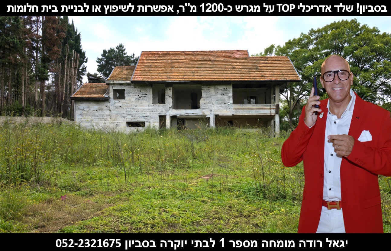 רוצים לבנות את בית החלומות שלכם בסביון'אני נרגש להציג בפניכם בלב סביון הותיקה שלד אדריכלי PRIME-LOCATION,על מגרש מישורי בפרופורציות מושלמות,הוגש היתר להרחבה של כ-380 מ'+בריכה ויחידה נפרדת,זו הזדמנות נדירה להמשיך את הקיים או לבנות בית יוקרה בהתאמה אישית ואיכות חיים מהגבוהות בישראל.לפרטים ולסיור אישי:יגאל רודה אוהב את העבודה לשרותך,מומחה מספר 1 בסביון-הסיכוי הגבוה ביותר עבורך לביצוע עסקה