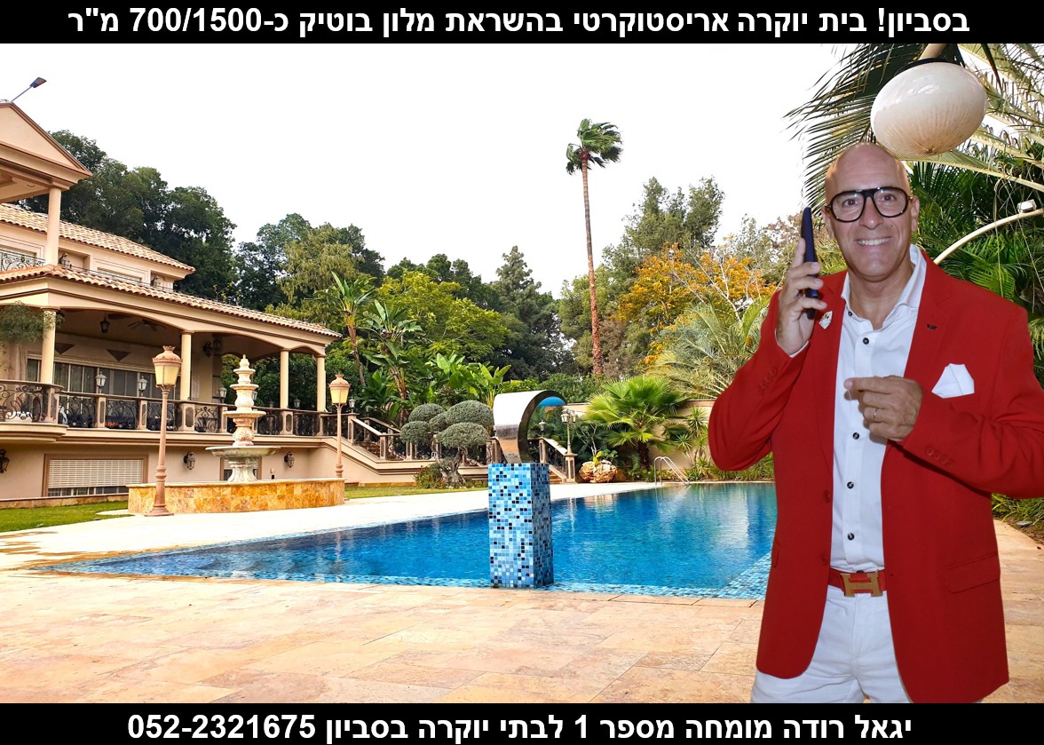 רוצה לגור בבית יוקרה בהשראת מלון בוטיק בסביון? בסביון! בית יוקרה אריסטוקרטי הכולל סלון XL עם תקרות גבוהות היוצרות תחושת מרחב עוצמתית,מטבח יוקרתי משודרג,חדר אוכל אלגנטי ל-20 סועדים,סוויטת הורים מלכותית,חדר קולנוע/כושר+בר,יחידה נפרדת,בריכת שחייה XL,חוויית מגורים שמרגישה כמו ריזורט פרטי.לפרטים ולסיור אישי: יגאל רודה אוהב את העבודה לשירותך,מומחה מספר 1 בסביון-הסיכוי הגבוה ביותר עבורך לביצוע עיסקה 052-2321675