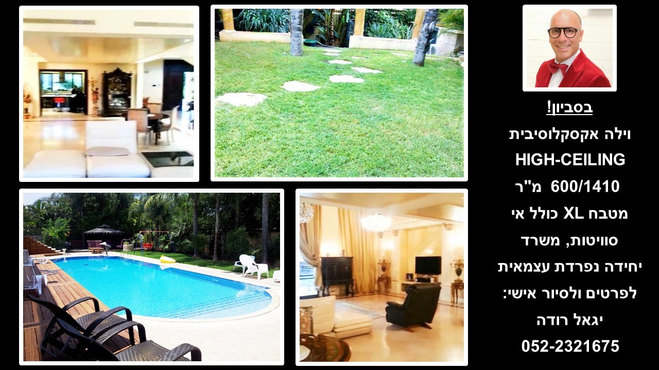 בסביון!וילה אקסקלוסיבית ,סלון high-ceiling מטבח ענק כולל אי ,סוויטות מרווחות,יחידה עצמאית נפרדת,KITCHEN-GARDEN ,משרד, איזורי חוויה מרווחים,בריכת שחייה אינפיניטי.לפרטים ולסיור אישי:יגאל רודה לשירותך,הסיכוי הגבוה ביותר עבורך לביצוע עיסקה 0522321675